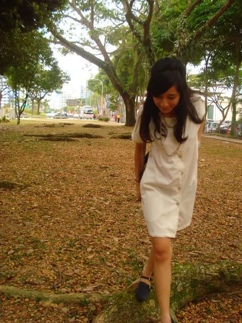 While I do swear by high heels, sometimes, my feet calls for some rest and relax. On days like this, I usually toss them platforms away in favour of a nice pair of shoes sans heels. Today, I wore out this pair of navy suede shoes which I bought out of impulse. And oh, my mum says I look like a nurse.