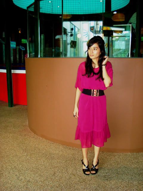 It wasn't intentional. I'm not on a long dress rampage. I had a family gathering today and my dear cousin texted everyone to wear something purple. My dress looks like a mix of purple and pink here, but in real life it's more purple than fuchsia. So there we were all decked up in purple but I pretty much stood out from the rest for my shade was a tad too bright. The rest all had on dark purple clothing, more royal I would say. You seriously can't blame me though for being completely out of sync. I only own six purple clothing and this I thought, was the most decent one. When in doubt, wear vintage, yes?