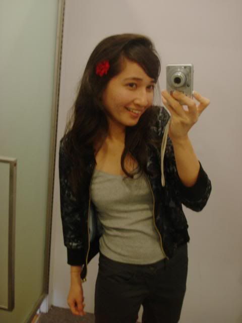 Went our for grocery shopping, had a late dinner, then stopped by a clothing store to get a pair of khaki and grey pants. The colour was perfect, but the fit was far from flattering. I do not really have a rule of thumb when buying a pair of pants, but I usually look for two things. One, the pants need to flatter my lower end. And two, they should not expose my butt crack when I try to sit down or bend. Anyhow, tonight was the first time I took photos in a changing room. Heh.