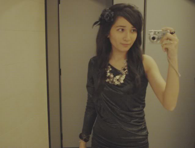 It is my birthday today. A year older, hopefully a year wiser as well. Today I wore out my asymmetrical draped dress. Gosh do I love how one side of it is sleeveless and the other has long sleeves. And just like icing on a cake, the dress is in my favourite shade of black. And no, no, its not just any black, but lamé black. Tsk.