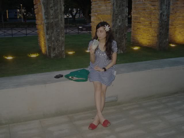 Went out solely to have dinner with my guy. I got bored while waiting for him to knock off from work hence I walked around and took some pictures of the surrounding. And oh, when you are starving, even a tiny chocolate pancake can taste heavenly. And while we are at that, even a cup of iced soya milk can make you forget (albeit for awhile) that your dress is sticking to your back. Such humidity calls for an unfussy ensemble, and a humongous orchid hair clip is needed to tame the frenzied hair.